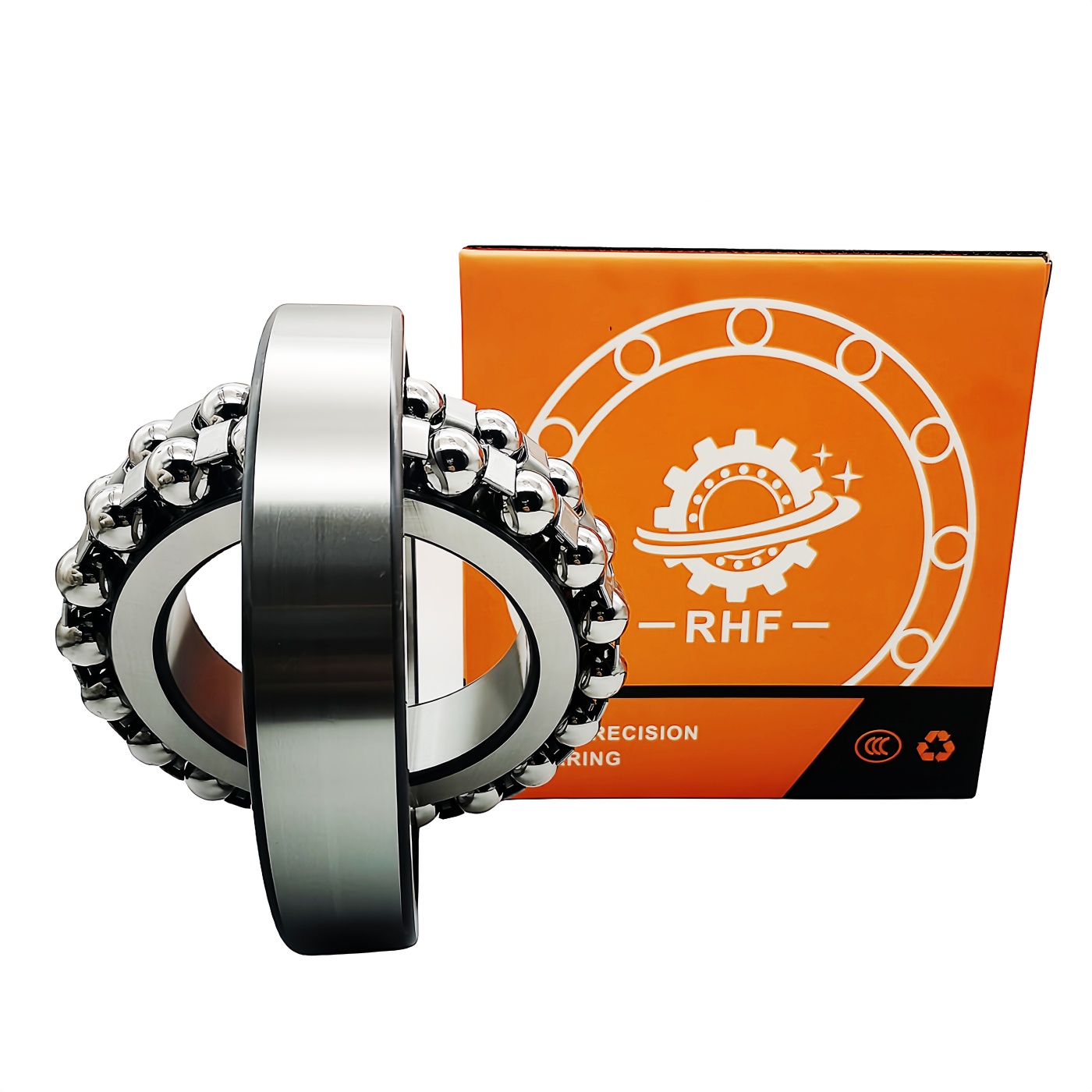 In a self-aligning bearing, the inner ring has two raceways and the outer ring has a single spherical raceway with its center of curvature coincident with the bearing axis. Self-Aligning Double Row Ball Bearings are designed to work in applications where severe misalignment exists whether from mounting or shaft deflection. The concave raceway of the outer ring in combination with two rows of balls operate over a wide range of contact angles.